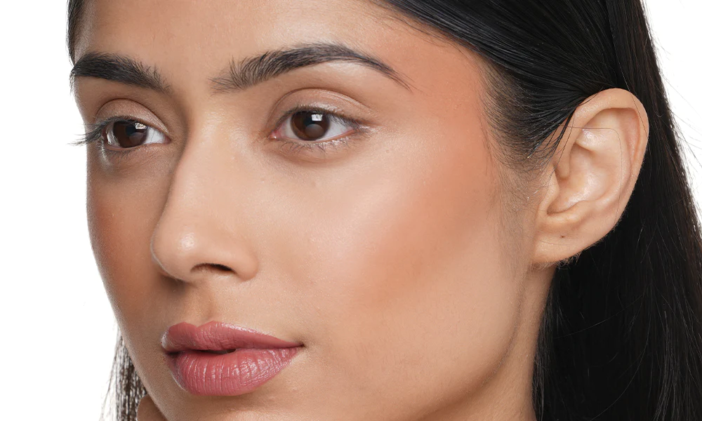 - Blend the highlighter gently to achieve a seamless, radiant finish.