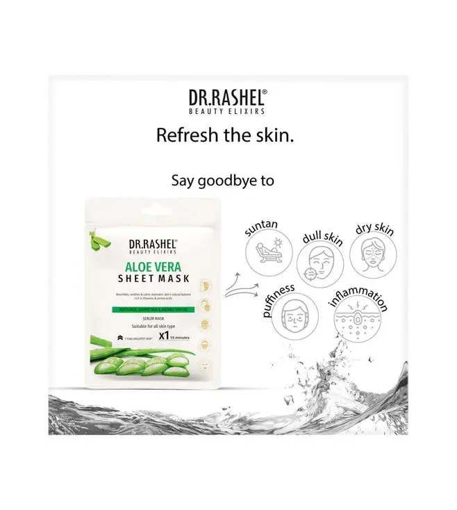 Give your skin the care it deserves with the Dr. Rashel Aloe Vera Sheet Mask, specially designed to deliver a burst of hydration and nourishment. Infused with Aloe Vera and skin-loving vitamins, this sheet mask helps moisturize deeply, soothe irritation, and balance excess oil — leaving your skin soft, refreshed, and glowing.