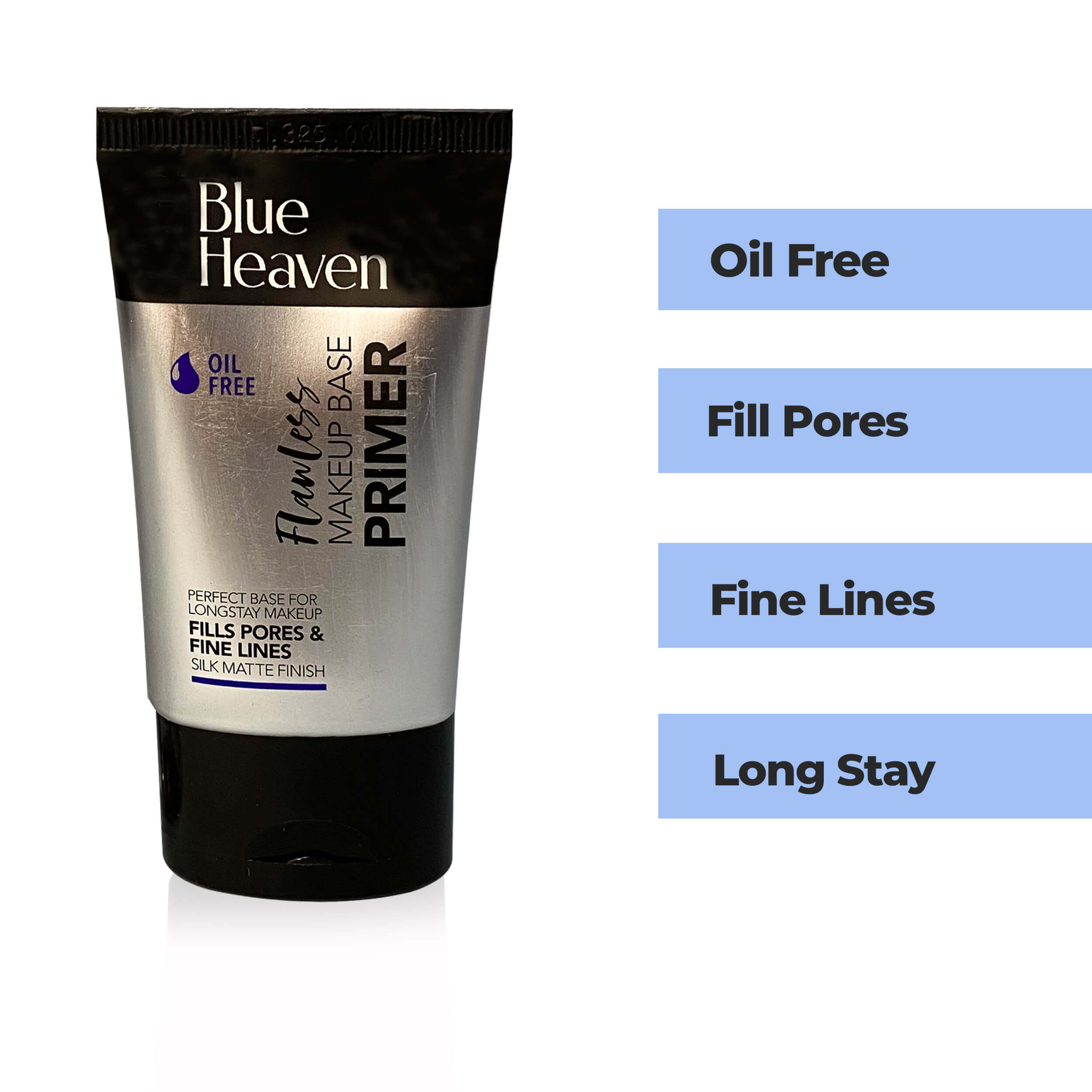 Achieve the perfect makeup base with Blue Heaven Flawless Makeup Base Primer. This primer instantly minimizes pores, blurs imperfections, and ensures a smooth makeup application that lasts all day. Enriched with Aloe Vera, it hydrates and smoothens the skin, while its silicone gel-based formula is oil-free and paraben-free, making it suitable for all skin types.