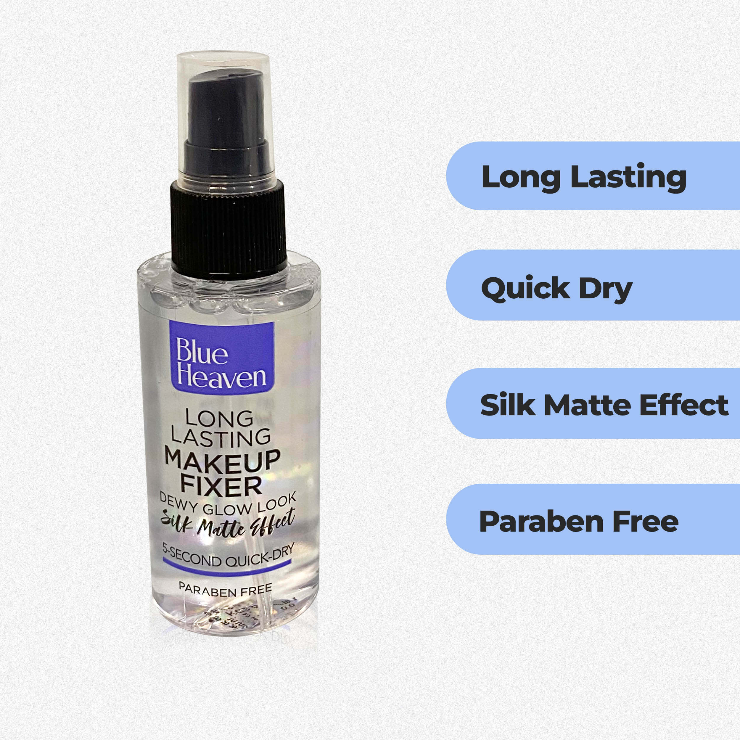 For unshakeable makeup, turn to Blue Heaven Long Lasting Makeup Fixer. This fixer seals in your makeup, preventing sweat, straying, or touch from spoiling it. With a soothing formula that includes Vitamin E, Vitamin B5, and Aloe Vera, this fixer mattifies the skin and keeps your makeup looking fresh. Use it as both a pre-makeup base and a post-makeup perfector for flawless and long-lasting results.