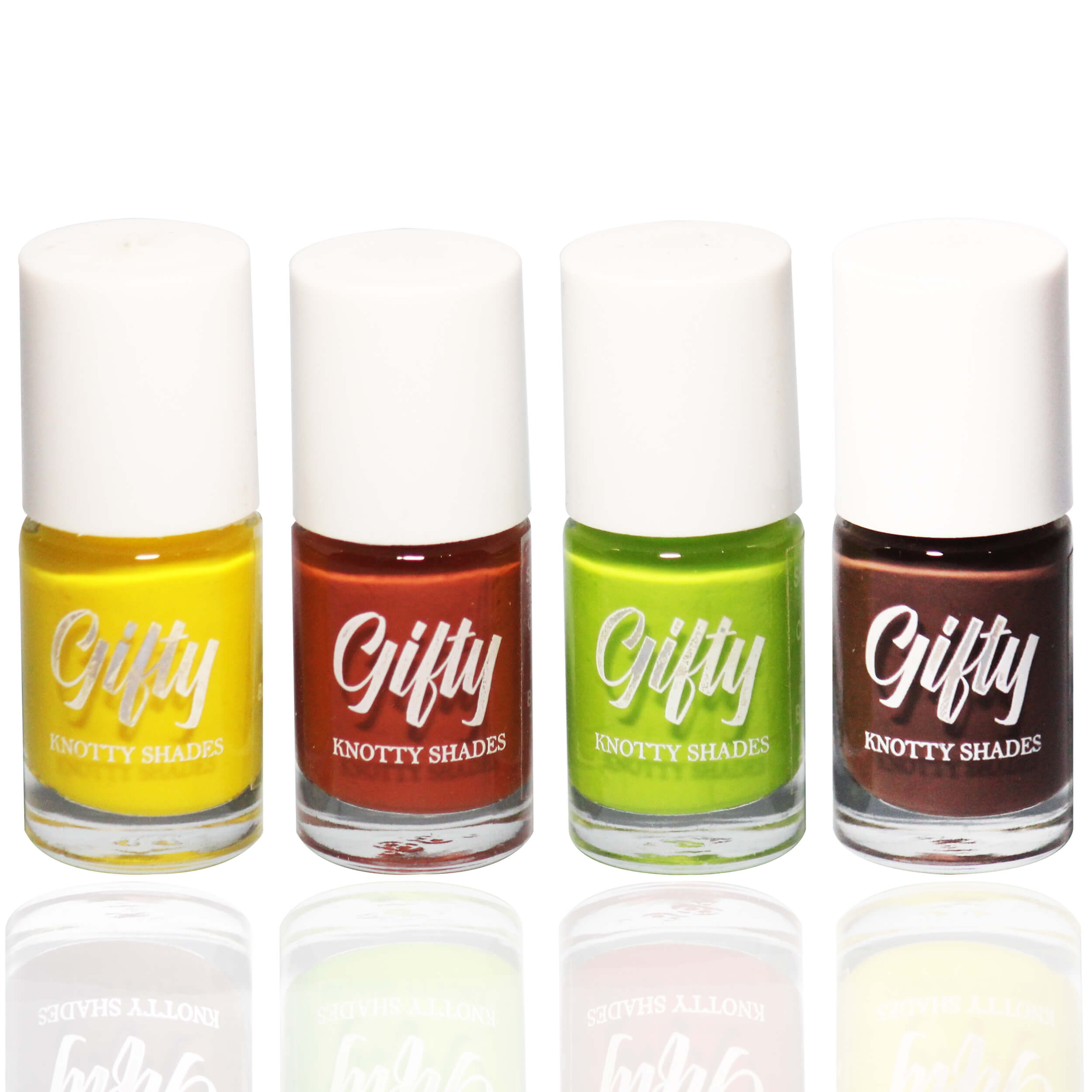 Introducing the Gifty 4 Shade Nail Polish Combo, featuring a delightful array of colours to enhance your nail game. This combo includes: