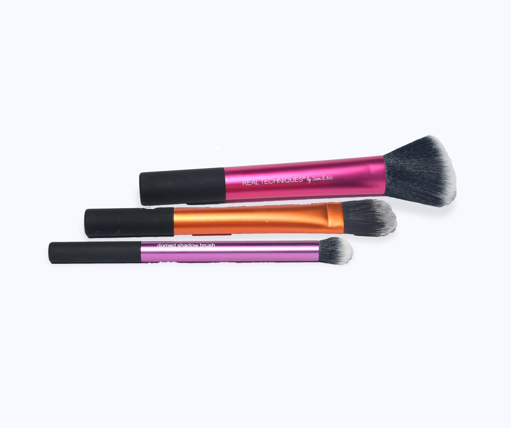 Real Technique Set of 3 Makeup Brushes | Foundation Brush | Domed Shadow Brush | Multi-Task Brush
